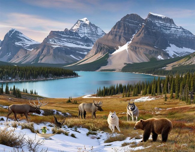 Хищники | Волк, Бурый медведь, Рысь, Росомаха | Волк, Чёрный медведь, Гризли, Пума, Койот, Рысь | ✅ Многие совпадают, различия по ареалу |
